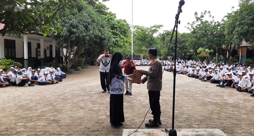 UPACARA PERINGATAN HUT PGRI KE 77 DI SMP NEGERI 2 KANDIS DI HADIRI OLEH KAPOLSEK KANDIS SEKALIGUS PEMBERIAN BANTUAN TAB
